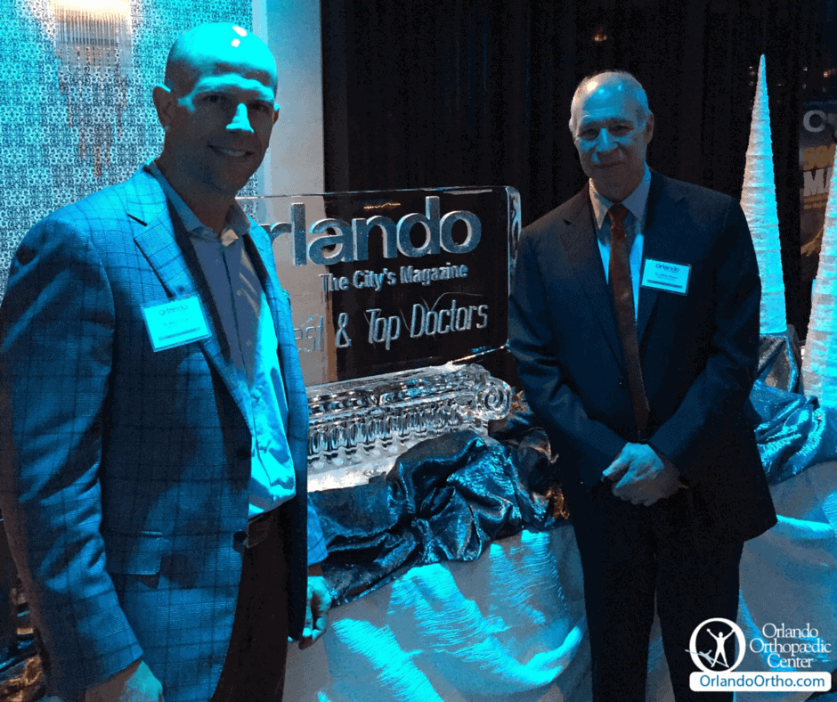 Jeffrey P. Rosen, M.D., (right) and Bryan L. Reuss, M.D., (left) accept the award for Orlando Orthopaedic Center.